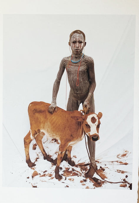 Boy with Calf by Jean-Michel Voge, A Tribal Child from the Omo Valley Ethiopia, Africa 1990s