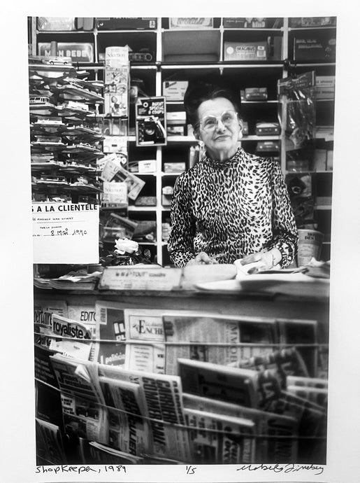Shopkeeper by Roberta Fineberg, Black-and-White Street Photography Paris, France 1980s